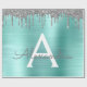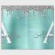 Silver and Teal Aqua Blue Faux Foil Metallic Sparkle Glitter Brushed Metal Monogram Name and Initial Wrapping Paper. This makes the perfect sweet 16 birthday, wedding, bridal shower, anniversary, baby shower or bachelorette party gift for someone that loves glam luxury and chic styles.