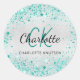 Silver teal glitter dust green monogram name classic round sticker