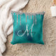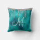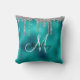 Silver Teal Metal Glitter Look Drips Monogram Cushion