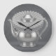 Keep time in style with this sophisticated Elizabethan Silver Teapot Wall Clock. Featuring a surrealist blend of a polished silver teapot adorned with an intricate lace ruff, this timepiece is a masterpiece of Dark Academia and Regency-core aesthetic.