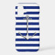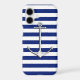 A silver chrome like tall anchor design on a navy blue stripes decor. A modern nautical gift.