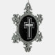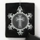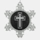 Silver Tone Christian Cross on Black Sparkle Snowflake Pewter Christmas Ornament