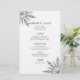 The festive Silver Tone Snowflake Winter Wedding Menu can be personalised with the details of the meal that you will serve at your December, January or February bridal shower luncheon, marriage reception dinner or post wedding brunch by adding the salad or first course, entree or second course and dessert or third course. This elegant custom wintery wedding menu features intricate silver snowflakes adorning the corners with a white background.