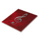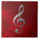 Elegant, trendy and customisable tableware, drinkware, kitchenware with a "silver" treble clef on a red background.