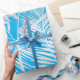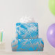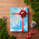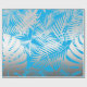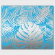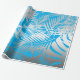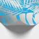 Silver tropical leaf jungle pattern on blue wrapping paper
