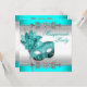 Elegant turquoise silver and teal blue masquerade party invitation. This beautiful turquoise blue masquerade party invitation is easily customised for your party or event, by adding your details to the front and back by adding your event details, font style, font size & colour, and wording. Please note - all of the invitation designs you will find on Zazzle are printed graphics on flat paper stock with no actual jewels, bows, raised, embossed, or added parts or pieces.