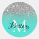 Silver Turquoise Glitter Ombre Monogrammed Classic Round Sticker