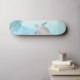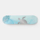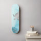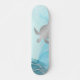 This skateboard for her features silver turtles on a turquoise blue silver ink background.