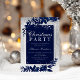 nvite your guests to a chic and festive celebration with this elegant navy blue and silver foil Christmas party invitation. The design features shimmering silver accents and botanical leaves silhouettes framing the invitation's text. Perfect for a sophisticated holiday gathering, this invite sets the tone for a stylish and memorable event.