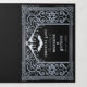 Set the stage for a hauntingly elegant event with these gothic all-in-one invitations. Inspired by vampire cathedrals featuring striking silver and black designs, it is perfect for a dramatic and unforgettable celebration. They are ideal for lovers of dark romance and timeless allure. The silver featured in this product is NOT real foil and is printed flat.