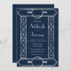 Silver Vintage Deco Frame Navy Blue Wedding Invitation