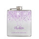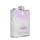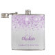 A faux silver looking background with violet faux glitter. Personalise and add her first name, monogram initials and full name. The first name is written in purple with a modern hand lettered style script.