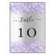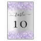 A faux silver background decorated with violet, lavender coloured confetti, sparkles. Personalise and add your table numbers. Add your numbers one by one.