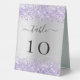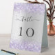 A faux silver looking background decorated with violet, lavender coloured confetti. Personalise and add your table numbers. Add your numbers one by one.