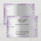 A faux silver looking background, decorated with violet, lavender coloured faux glitter. Personalise and add the reply by date.