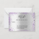 A faux silver looking background, decorated with violet, lavender coloured faux glitter. Personalise and add the reply by date.