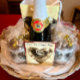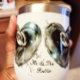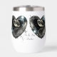 Lovely wedding designed water or wine tumblers. This wedding tumbler has a printed image of a painting with two silver wedding bands inside a silver crystal heart.