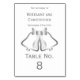 Minimalist wedding table number bells design. Customise this silver coloured wedding table number with your wedding details. Should you require any help with customising then contact us through the link on this page. Silver bells design personalised wedding table number card