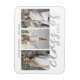 Three photo collage with custom whimsical script "class of" in rose faux foil with year in same colour. All information is in sans serif elegant font on the top of the card. Back side is ombre pink polka dot glitter pattern. Make beautiful custom announcements with easy customisation.