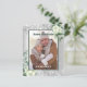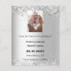 Faux silver looking background, decorated with white florals, flowers, eucalyptus greenery and faux silver glitter, sparkles. Personalise and add your photo, names and wedding details.