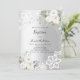 An elegant baptism invitation, gender neutral. A faux silver looking background decorated with white florals, roses, lace and a cross. Personalise and add a name and details.
