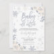 Silver White Gender Neutral Winter Baby Shower Invitation