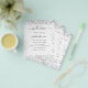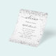 On the front: A modern, elegant wedding program, timeline. A white background decorated with faux silver glitter, sparkles. Personalize and add your names and wedding details. Black colored letters. If you have more text it's possible to reduce the line space.