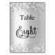 Silver white glitter calligraphy table eight 8 number