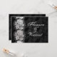 Elegant silver white vintage style printed lace ribbon set against floral black damask pattern Wedding Invitation.
