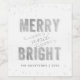Stylish and festive, these wine bottle labels are the perfect way to add some extra festivity glamour to your holiday party. Features silver snow and stars behind a silver "Merry and Bright" text. The grey text can be changed to fit your family name and year.