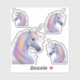 A regal silver-white unicorn with a golden horn and soft pastel rainbow mane stands proud. Designed for unicorn lovers, fantasy fans, and anyone sho adores ethereal vibes. Set of four stickers features two matching, mirrored unicorns as well as a smaller and one larger unicorn sticker. Perfect as a gift, to accessories and decorate with magic.