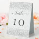Silver white wedding table number
