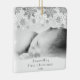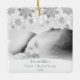 Celebrate baby's first Christmas with this elegant personalised silver snowflake ornament. This ornament is fully customisable! You can edit the text and add your own photo by clicking "personalise this template". This personalised baby's first Christmas ornament feature a custom photo of your baby and space for your baby's name and the current year. Hand drawn white and silver glitter snowflakes are clustered around the top as a cute winter frame and the text is in grey. Classic silver and white Christmas colour scheme make this photo keepsake ornament festive but classy.