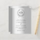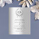 A faux silver looking background and a wreath. Personalise and add your monogram initials, names, and details. Black text.