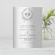 Silver wreath monogram wedding invitation