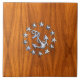 An American yacht flag nautical symbol silver chrome like applique on a teak wood grain style decor. A classy custom nautical style gift for yourself or for someone special, on or off the boat.
