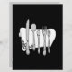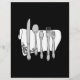 A custom restaurant or food-business menu flyer template with elegant script letters and a simple set of silverware on a pretty table napkin in black, grey and white. The reverse has room for your menu, or delete for a blank page. Customise it to add or remove text, upload your own logo, change fonts, background colours and more, even save your design for later.
