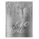 Silvery Brushed Foil Glitter Drip Fancy Monogram Notebook