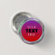 Chrome plated metal button for text, logo or image. Magenta-red circle. Template with three text fields.