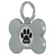 A paw print and the name "Simba" is shown on this charming pet tag that's in the shape of a bone