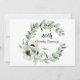 Chic green leaves and white floral motif for 20th wedding anniversary colours celebration party invite. 20th Wedding Anniversary repeated on reverse.