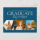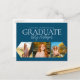 Simple 3 Photo Blue Graduation Announcement Postcard