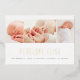 A simple baby photo birth announcement featuring gold foil name and 3 photos on the front. The back has a horizontal photo and personal message from the new parents. This chic, modern design does not interfere with the photos but rather compliments it. A modern baby announcement card with thoughtful details and clean design. Click the edit button to customise background colours and fonts.