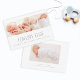 A simple baby photo birth announcement featuring light grey name and 3 photos on the front. The back has a horizontal photo and personal message from the new parents. This chic, modern design does not interfere with the photos but rather compliments it. A modern baby announcement card with thoughtful details and clean design. Click the edit button to customise background colours and fonts.