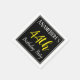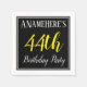 This simple and elegant paper napkin design features a message like "ANameHere’s 44th Birthday Party", with the "44th" in fancy yellow-coloured text, within a black-coloured square area featuring a simple border outline. The name can be personalised. Napkins like these could perhaps be used at a birthday party for somebody who is celebrating their forty fourth birthday. [~Z0000150]