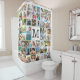 Simple 60 Photo Collage Monogram Custom Colour Shower Curtain. Create your own custom colour monogrammed photo shower curtain utilising this easy-to-upload photo collage template with 60 square pictures in your choice of font style and colours (shown with grey monogram and border against an editable white background). Fill with family, pet and vacation photos, your favourite photography shots or images of your artwork.