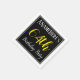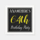 This simple and elegant paper napkin design features a message like "ANameHere’s 64th Birthday Party", with the "64th" in fancy yellow-coloured text, within a black-coloured square area featuring a simple border outline. A custom name can be used. Napkins like these could perhaps be used at a birthday party for somebody who is celebrating their sixty fourth birthday. [~Z0000150]