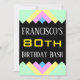 This simple birthday party invitation design features a message like "FRANCISCO’S 80th Birthday Bash", where the name and birthday number can be customised. It also features a fun, colourful, geometry-inspired background. The event details on the back can be customised. It could be used to invite people to a birthday party being held for somebody who is celebrating their 80th birthday.