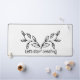 A simple and calm desk mat with a black rose drawing, a white background and a black back, with no other additions, and a motivational sentence for work.