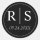 Make a statement of refined style with our "Simple and elegant black monogram wedding Classic Round Stickers." These classy round seal stickers offer a subtle yet impactful way to personalise your wedding. The design features a monogram, showcasing your initials and wedding date in a crisp, clean white against a timeless black backdrop, framed by a white border.